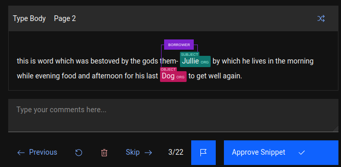 - Visualize relationship between two entities(words) clearily showing object and subject with additional annotation on the entities in a paragraph.